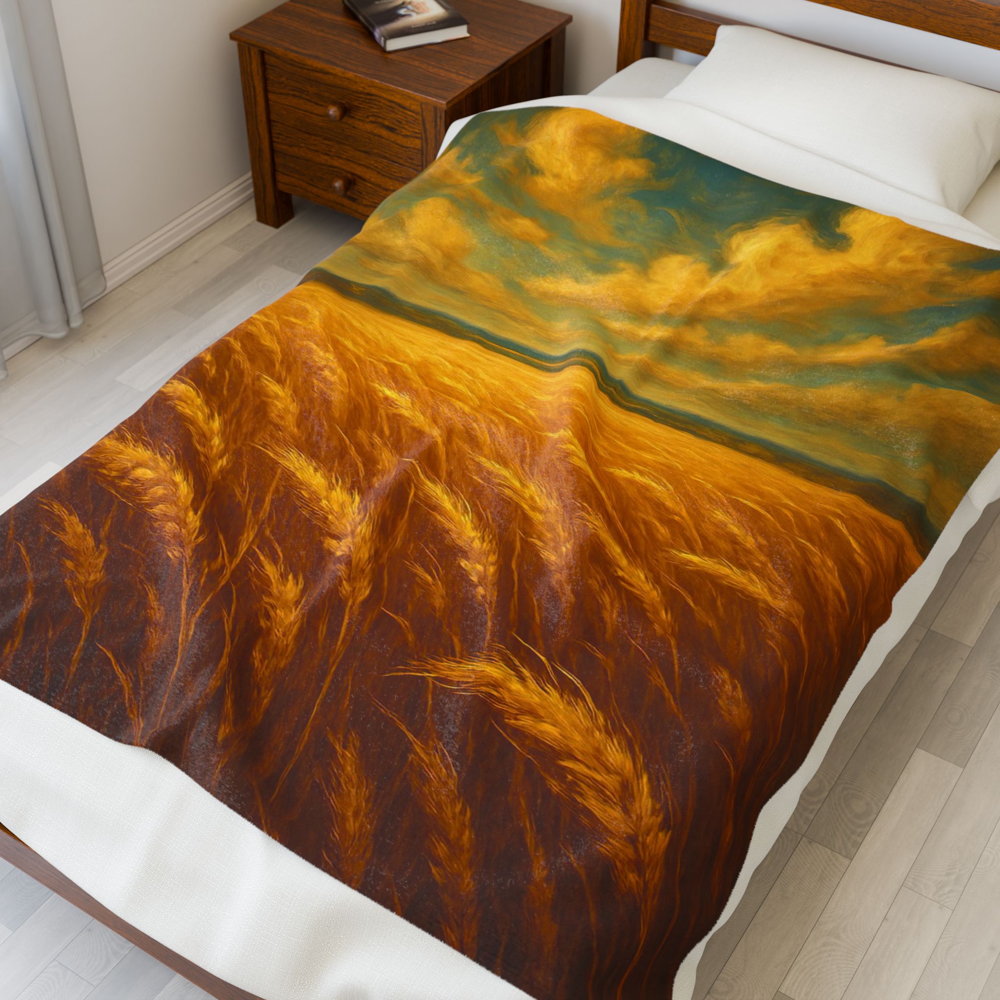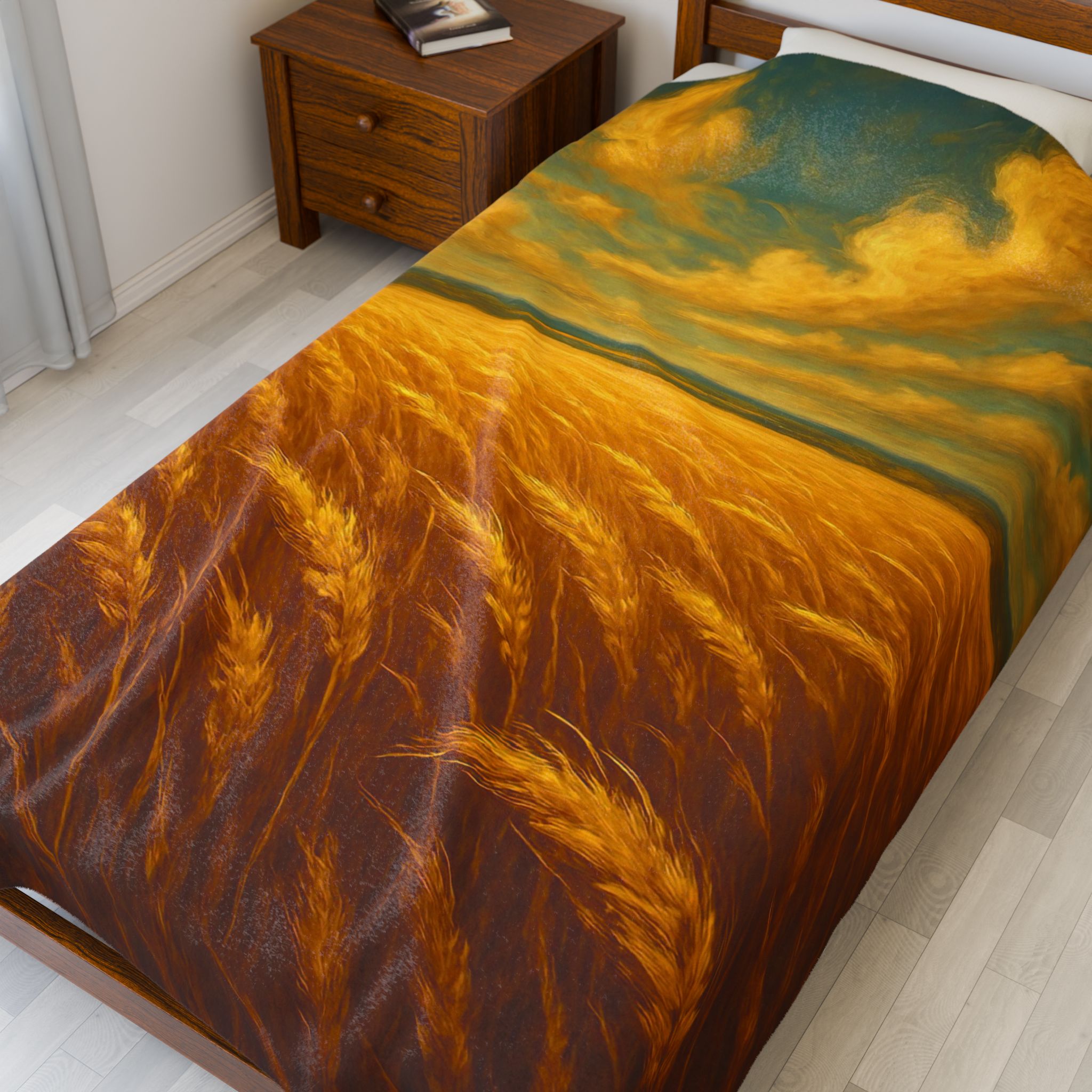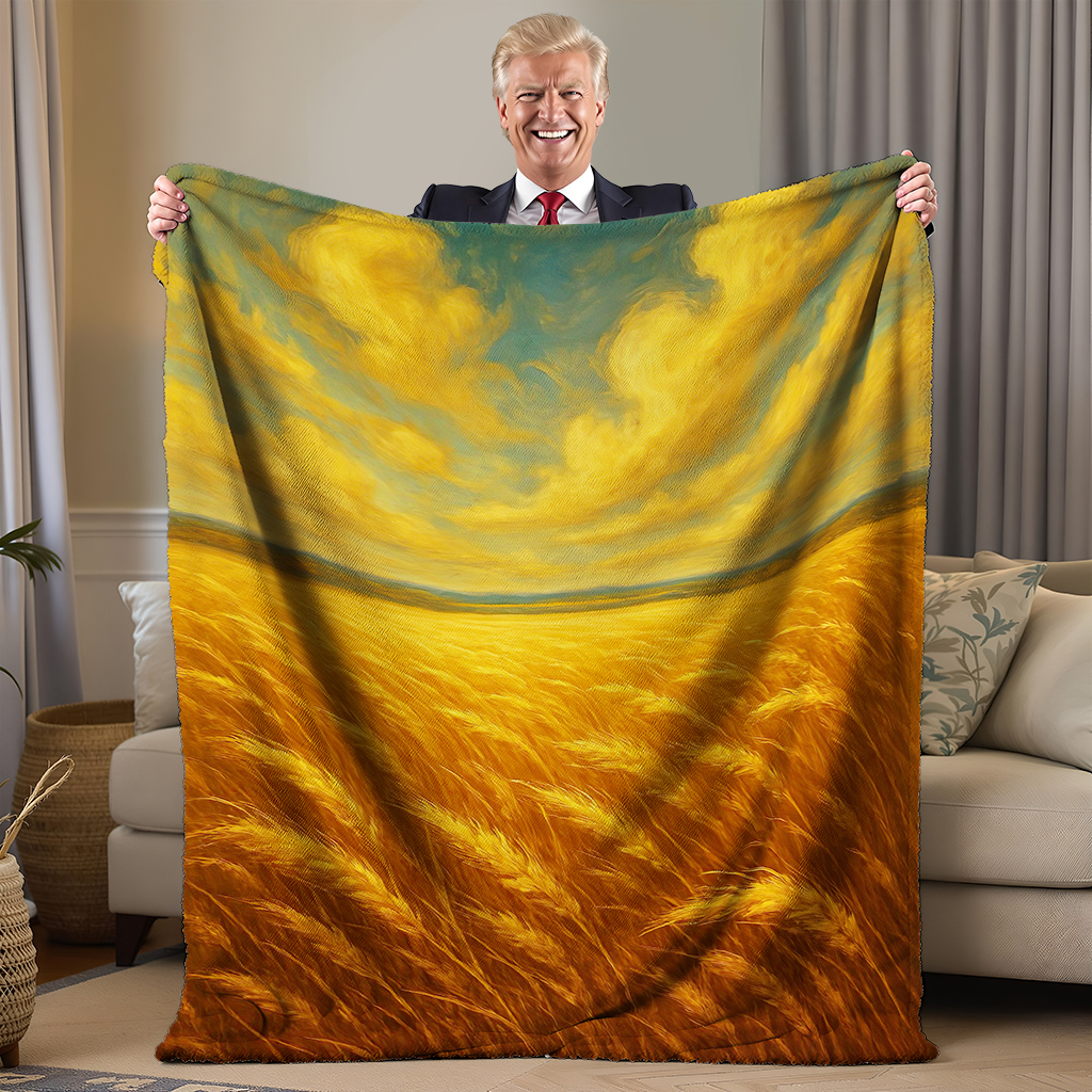 Bring the golden glow of the American heartland into your home with our “Amber Waves of Grain” luxury throw blanket — a warm, sunlit tribute to the land that feeds the nation.
