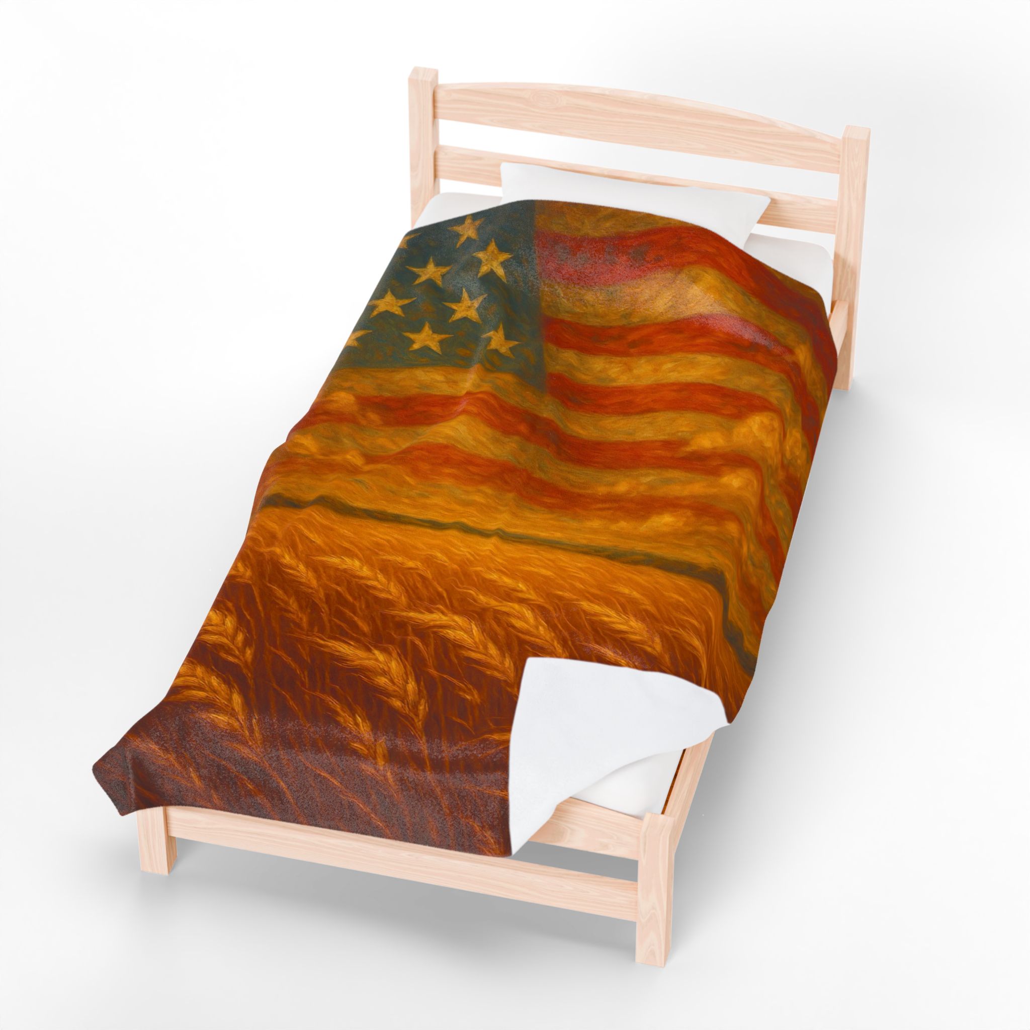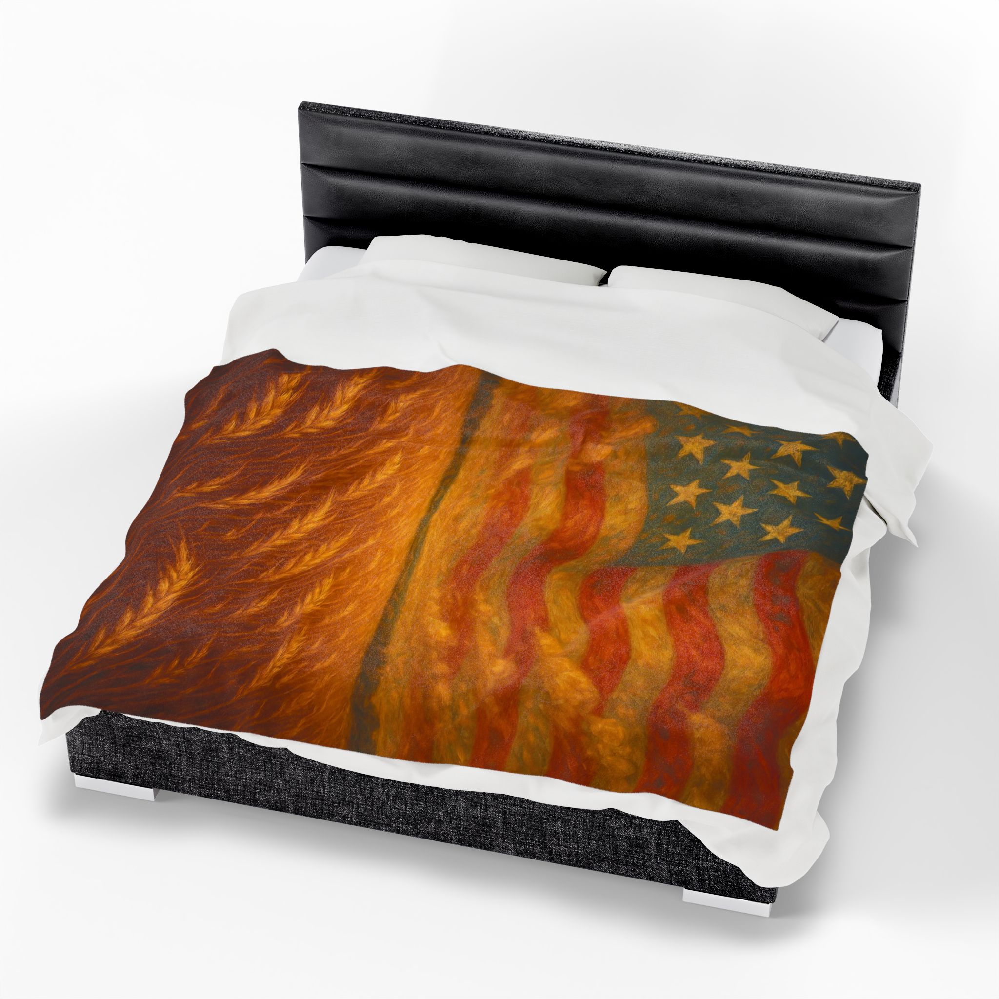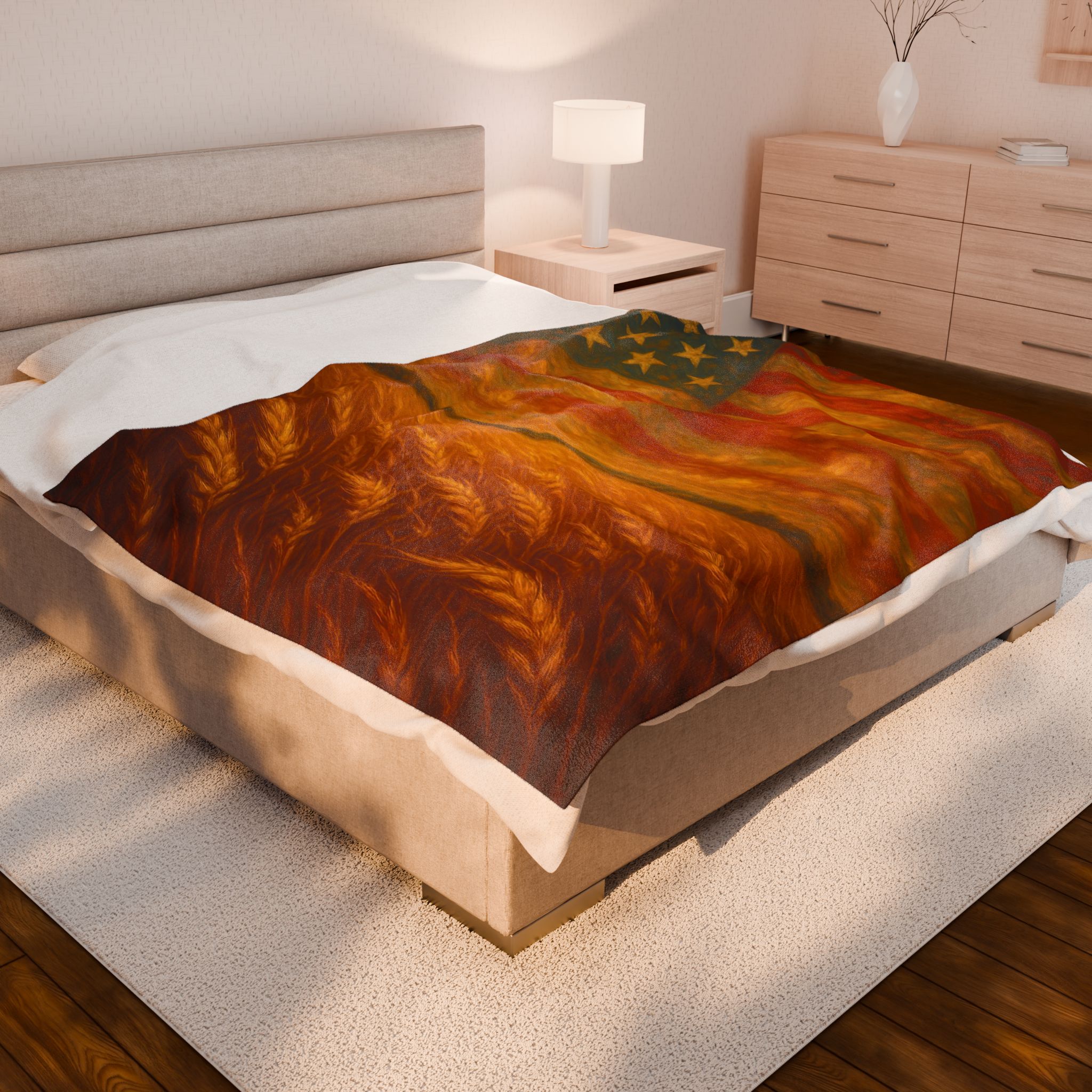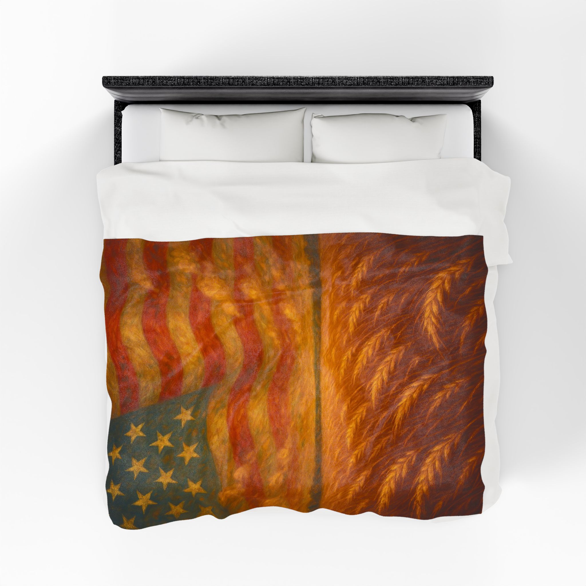 america the beautiful blanket, patriotic flag throw blanket, american wheat field decor, 4th of July home accent, liberty theme throw, rustic american flag art, heritage pride blanket, independence day bedding, country style patriotic decor, veteran gift USA, americana wall throw, freedom inspired blanket, stars and stripes bedding, wheat and flag blanket art, farmhouse liberty home gift