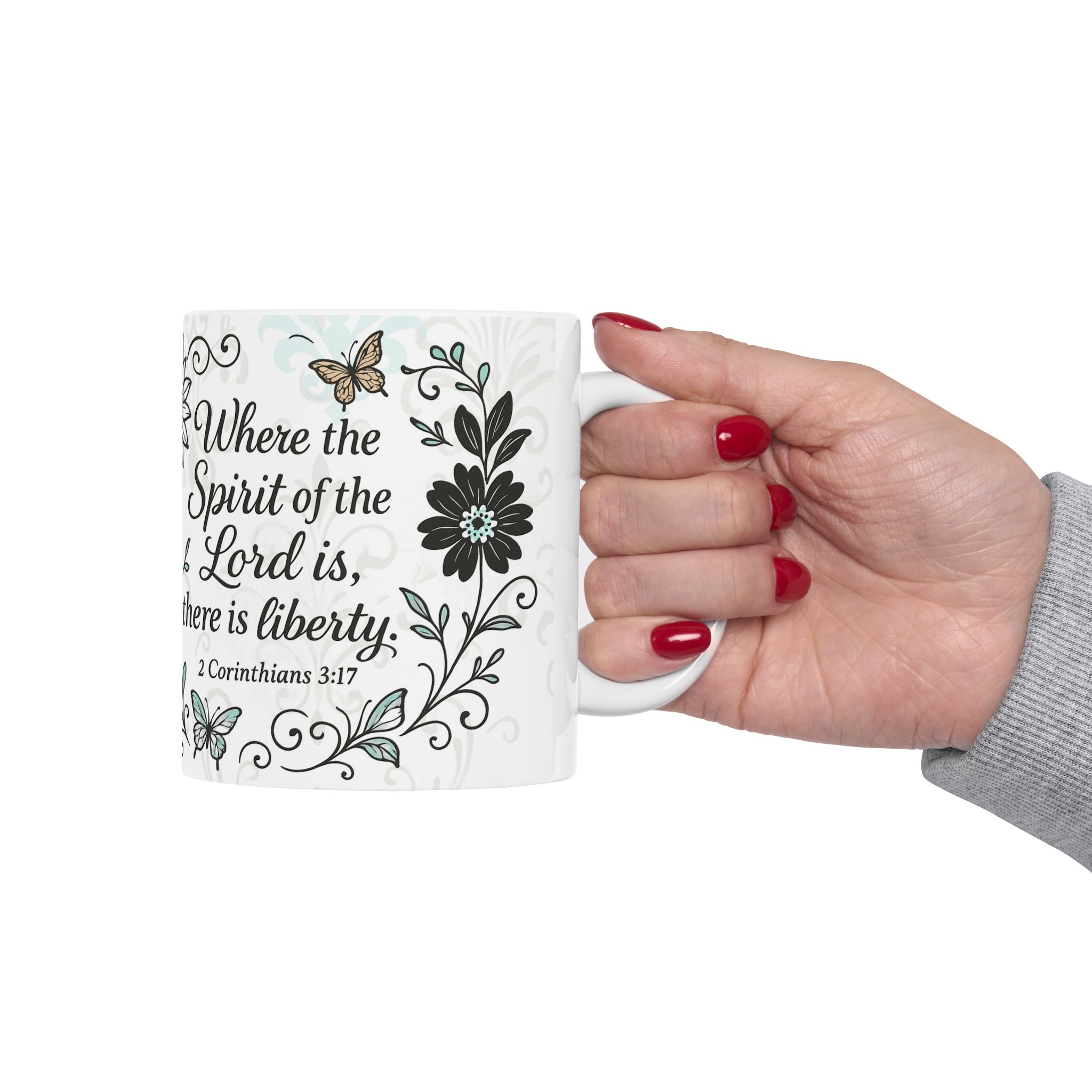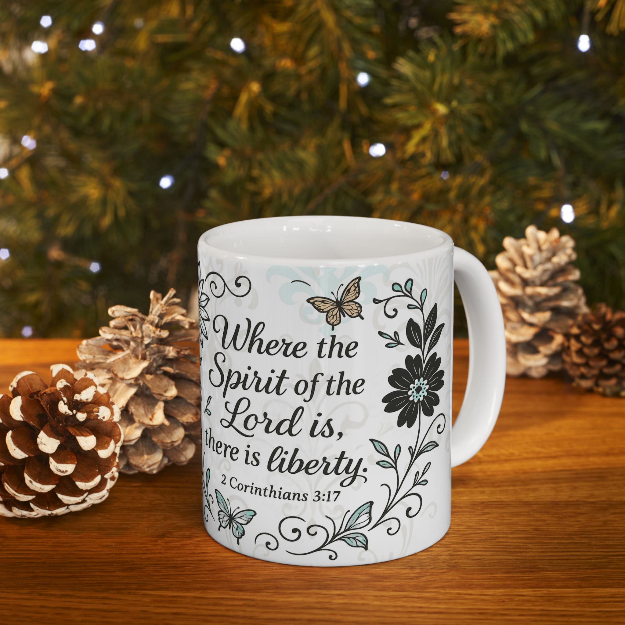 christian coffee mug, bible verse mug, liberty scripture gift, 2 corinthians 3:17, christian mug for women, christian mug for men, religious gift idea, faith quote mug, spiritual encouragement gift, scripture coffee cup, christian liberty mug, mug with bible verse, christian floral mug, faith based home decor, jesus mug