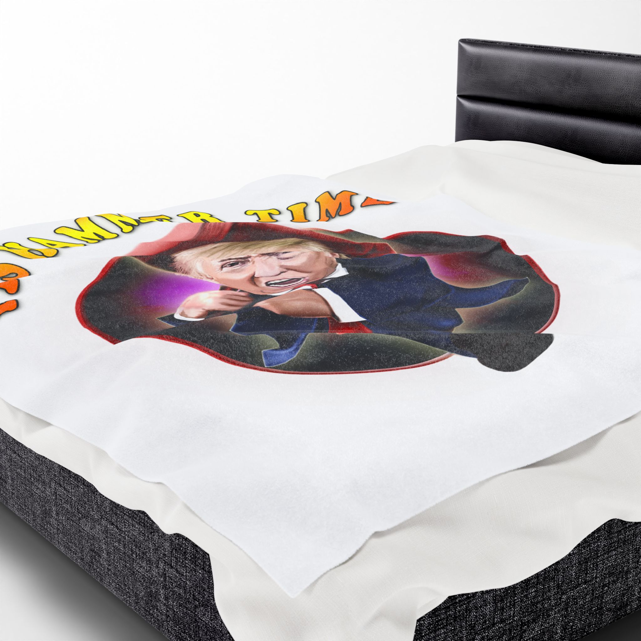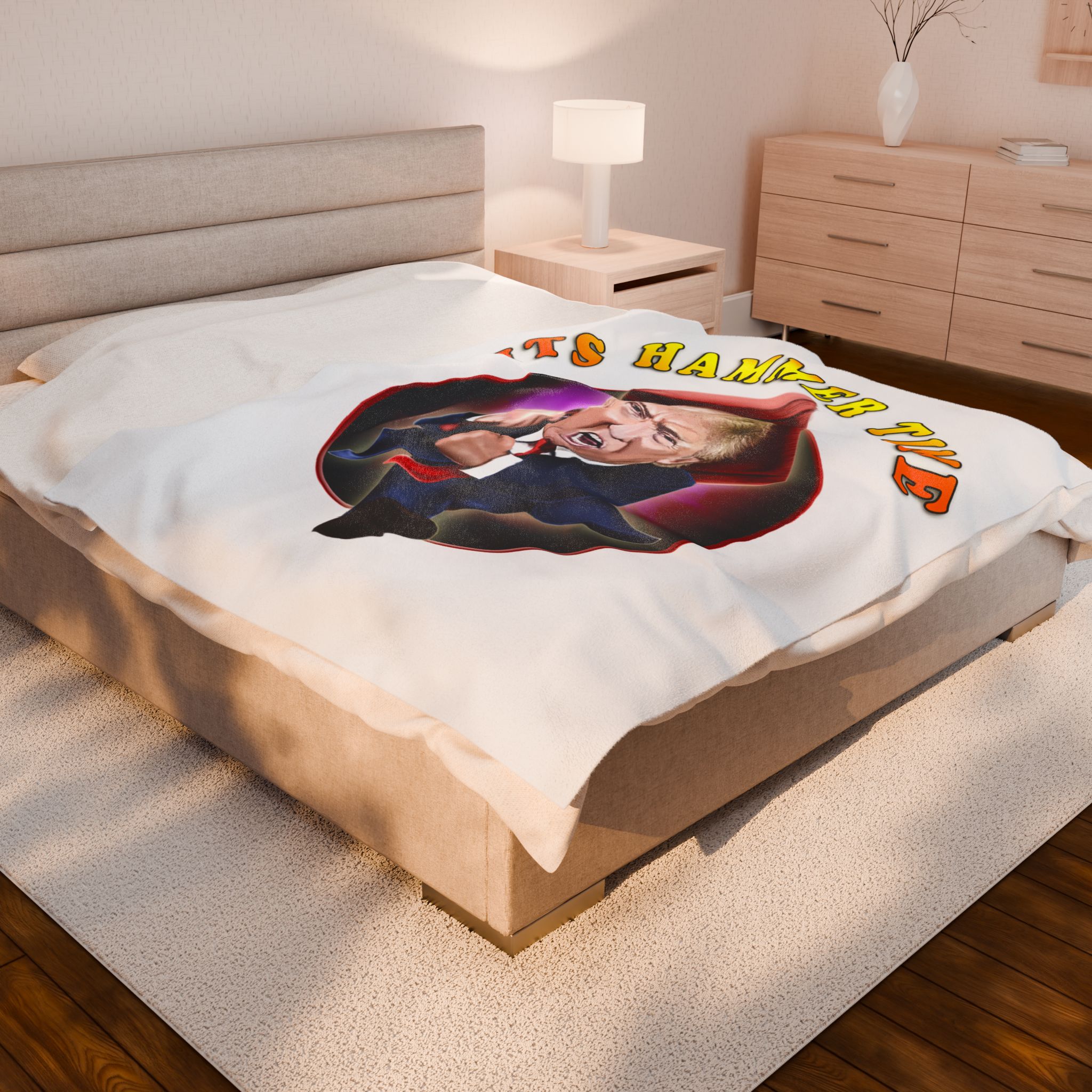 White Funny Trump Blanket, Political Humor Throw, Gag Gift for Conservatives, Republicans, and Trump Supporters Hammer time